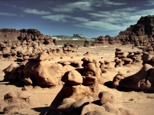 Goblin Valley | UtahTisíce vtipně vypadajících skalních útvarů vytvořila vodní eroze. „Údolí muchomůrek“, jak se tento indiánský kraj kdysi nazýval, by mohl mít i spousty jiných názvů. Záleží jen na vaší fantazii. -