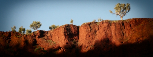 Millstream-Chichester | Pilbara - AustrálieHorká australská oblast Pilbara. Je to kraj odlehlý a drsný. Kdysi se tu těžilo zlato. Z planiny vystupují oblé kopce nebo stolové hory a vše pokrývají zlatožluté trsy spinifexu, mezi nimiž se ukazuje holá červenohnědá půda. Balvanitá řečiště, většinou vyschlá, lemují mohutné bělokoré eukalypty. Některé jsou doslova obleženy bílými papoušky kakadu, kteří navečer usínají za hlasitého křiku. -