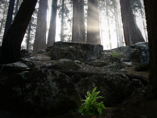 Sekvojový les | KalifornieKdyž si vzpomenu na procházku lesem plným sekvojí. Vybaví se mi naprosté ticho. Snad jakoby každý živočich vzdával hold největším živým organismům na planetě Zemi. Ostatní druhy jehličnanů vypadají vedle sekvojí jako keříky. Vždyť obvod kmene největších sekvojí měří i přes 30 metrů. -