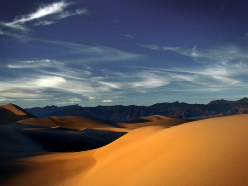 Mojave Desert | KaliforniePás žlutých písečných dun táhnoucích se napříč údolím. Na obzoru je vidět pohoří Siera Nevada a za ním zase úplně jiný svět. Zdejší různorodá krajina mě fascinovala. -